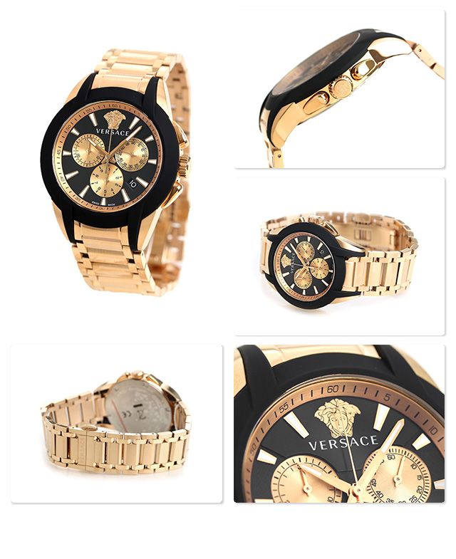 ヴェルサーチ 時計 メンズ 腕時計 キャラクター クロノグラフ スイス製 VEM800318 VERSACE ブラック×ピンクゴールド 新品