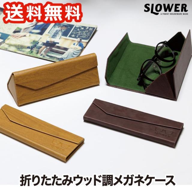 【送料無料】SLOWER 折りたたみ メガネケース eyeglass case wood アイグラスケース | ウッド調 めがねケース 眼鏡ケース サングラスケース 木目調 収納ケース めがね入れ 携帯 コンパクト スリム マグネット シンプル 三角 父の日 おしゃれ プレゼント スロウワー ギフト