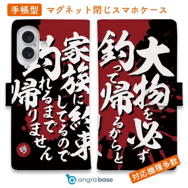 スマホケース 手帳型 カード収納 マグネット iPhone17 Pro Max iPhone Air iPhone16e iPhone16 Pro Max 16 Plus 15 Pro Max Xperia 10 VII Galaxy AQUOS ARROWS Pixel10 XL 釣り 魚 ルアー 釣りざんまい 釣りと自分と家族との約束