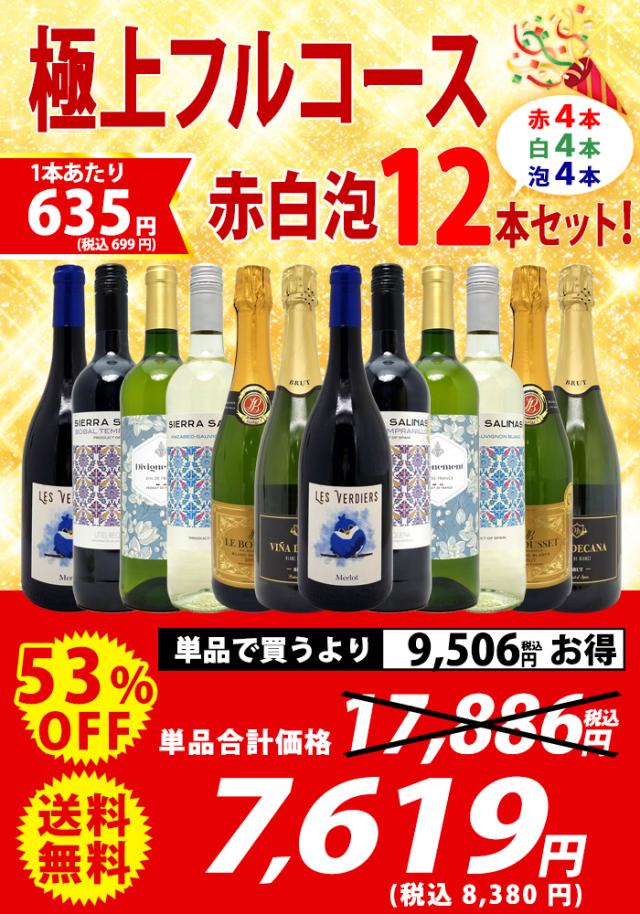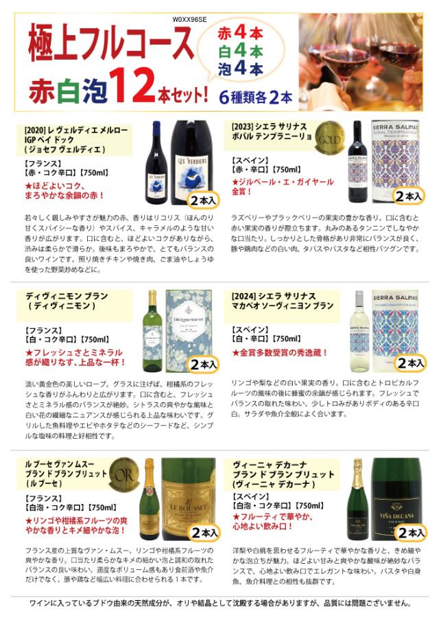 ワイン ワインセット 極上フルコース 赤白泡12本セット 送料無料 (6種類各2本) ミックス mix ^W0XX96SE^