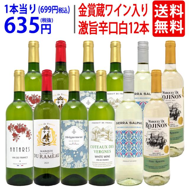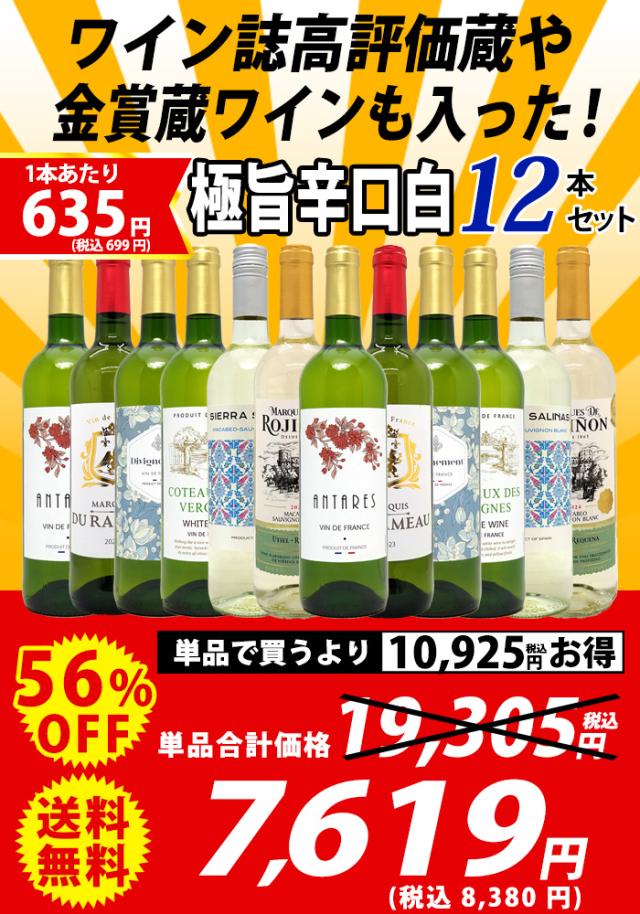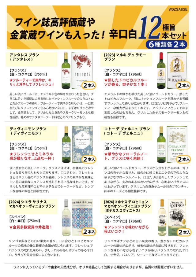 ワイン ワインセット ワイン誌高評価蔵や金賞蔵ワインも入った辛口白12本セット 送料無料 (6種類 各2本) ^W0ZSA8SE^
