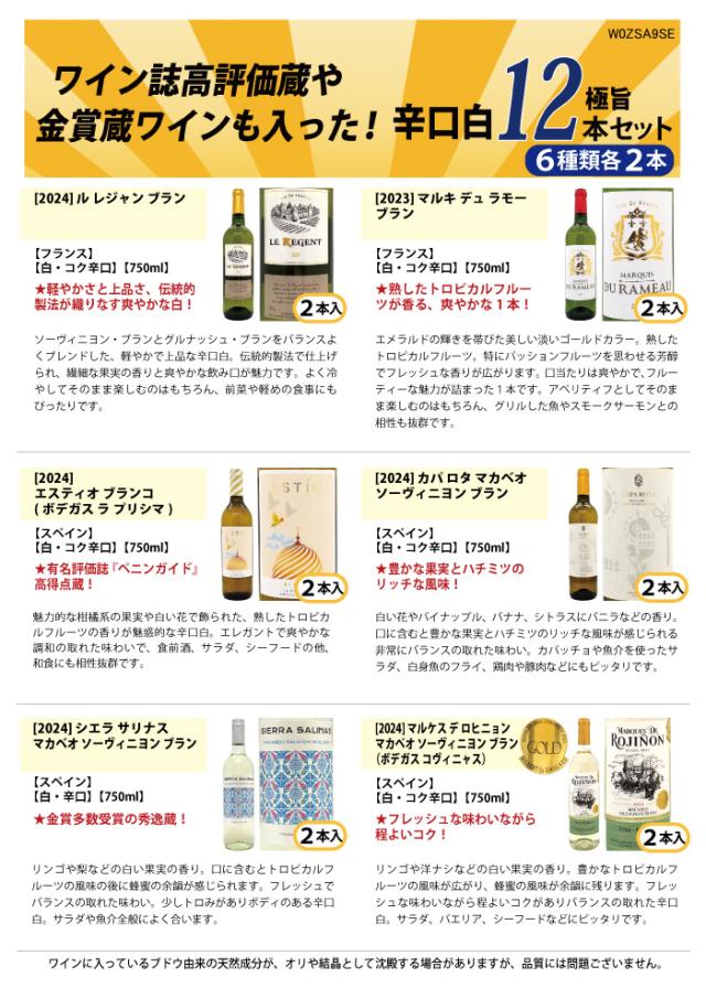 ワイン ワインセット ワイン誌高評価蔵や金賞蔵ワインも入った辛口白12本セット 送料無料 (6種類 各2本) ^W0ZSA9SE^