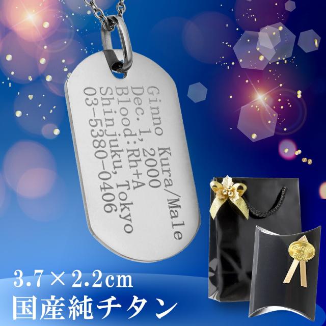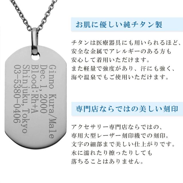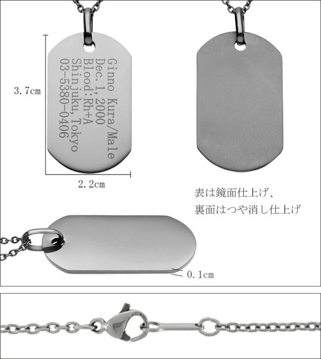 ドッグタグ チタン ネックレス ペンダント Mサイズ ペンダントトップ 刻印無料 メッセージ 刻印 メッセージ刻印 名入れ 印字 認識票 迷子札