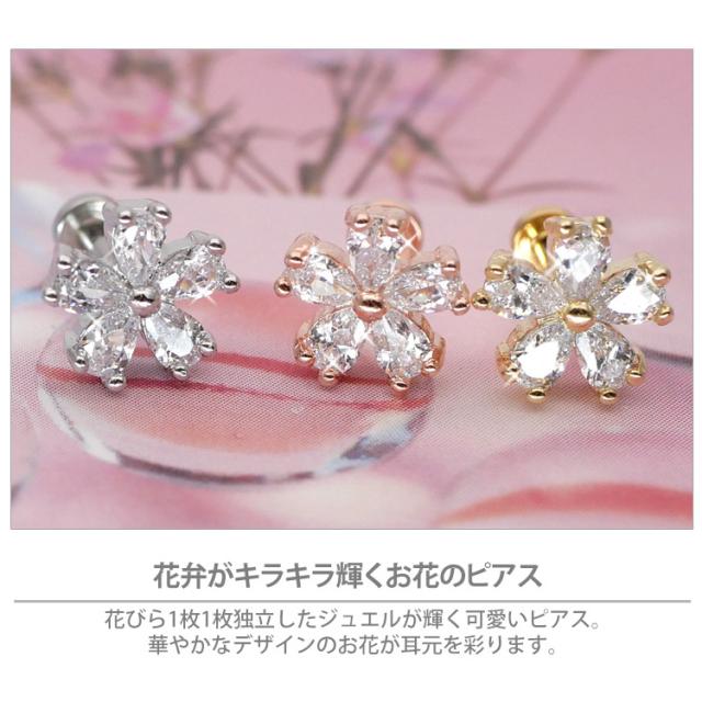 クリスタルの花びらがキラキラと輝く、ガーリーなピアス。