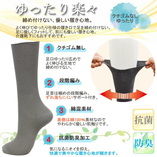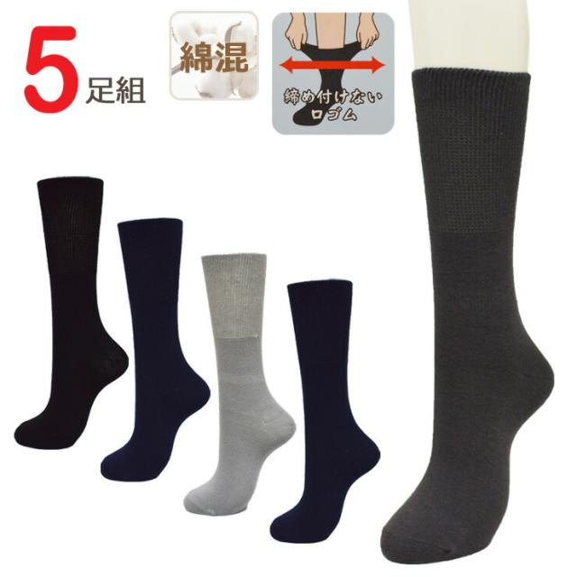 メンズ ソックス ゆったり楽々 締め付けない靴下 5足組 送料無料 しめつけない メンズ 靴下 セット ソックス メンズ 紳士靴下 靴下 メンズ 介護 介護用 履き口 ゆったり 靴下 ゆったり 口ゴム クチゴムなし しめつけない靴下 抗菌 防臭 綿混(03044)