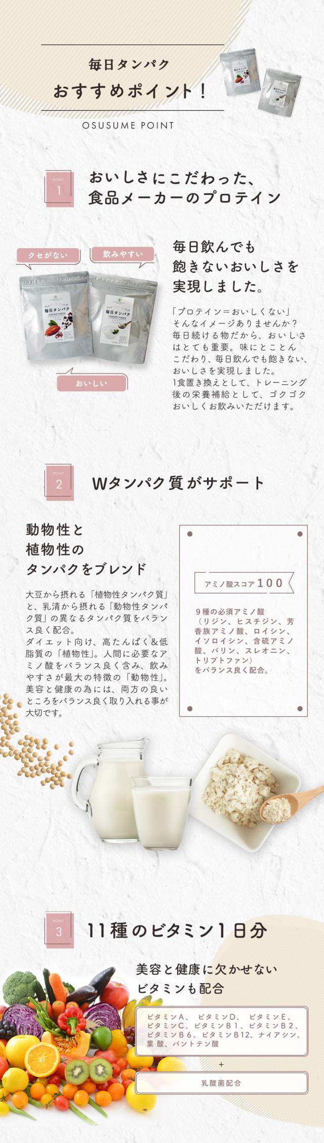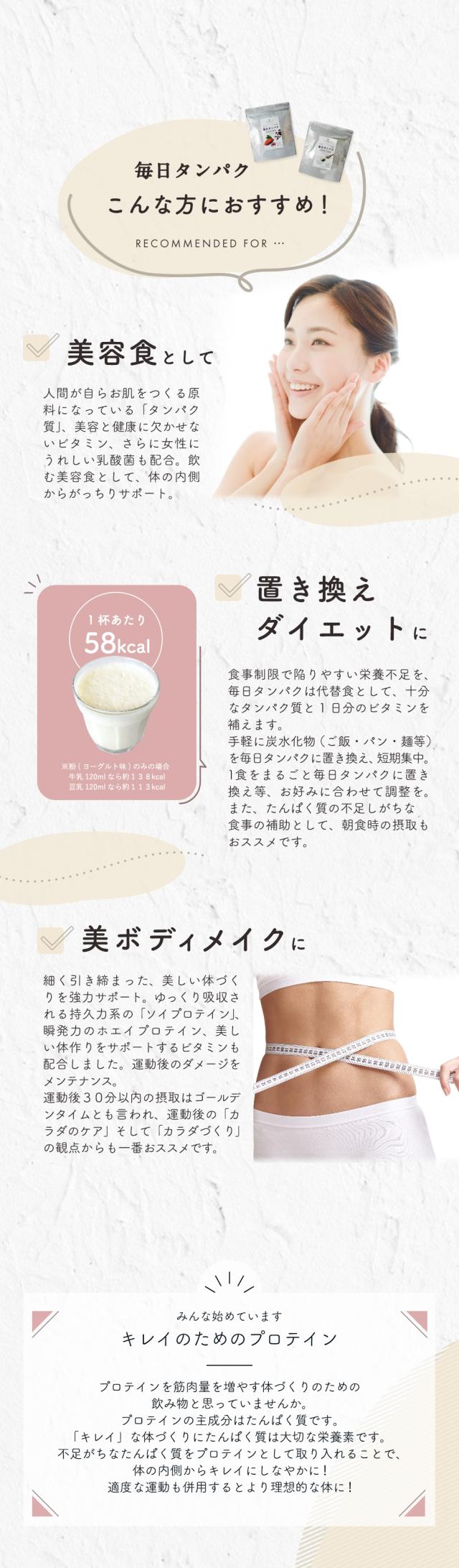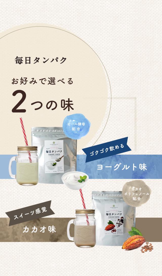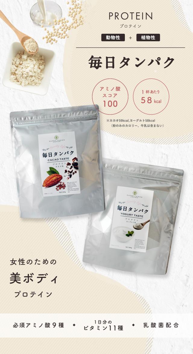 プロテイン 女性向け 毎日タンパク 260g ヨーグルト味 カカオ味 ホエイ&大豆ソイプロテインW配合 日本製 美容 プロテインダイエット 置き換え 糖質制限 大豆タンパク
