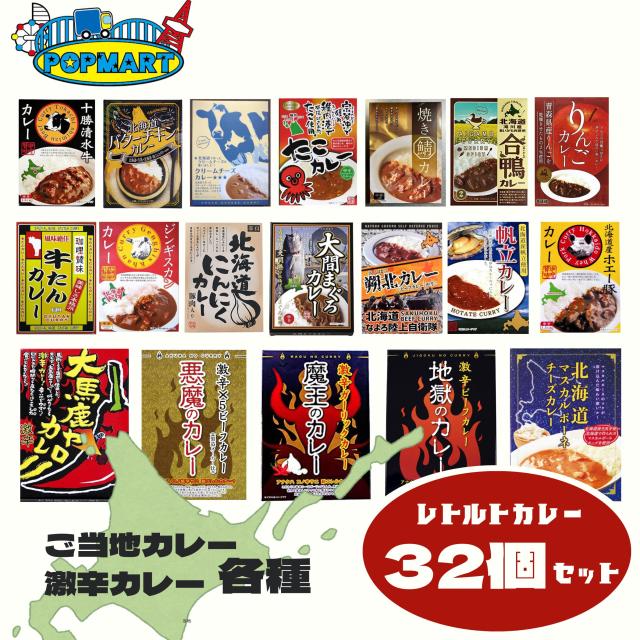【北都】レトルトカレー 32個詰め合わせセット (ご当地 激辛 面白 いろいろ 北海道)