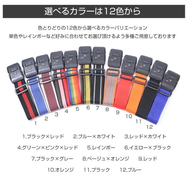 ☆スーツケースベルト (TSAロック対応) 全12カラー。
