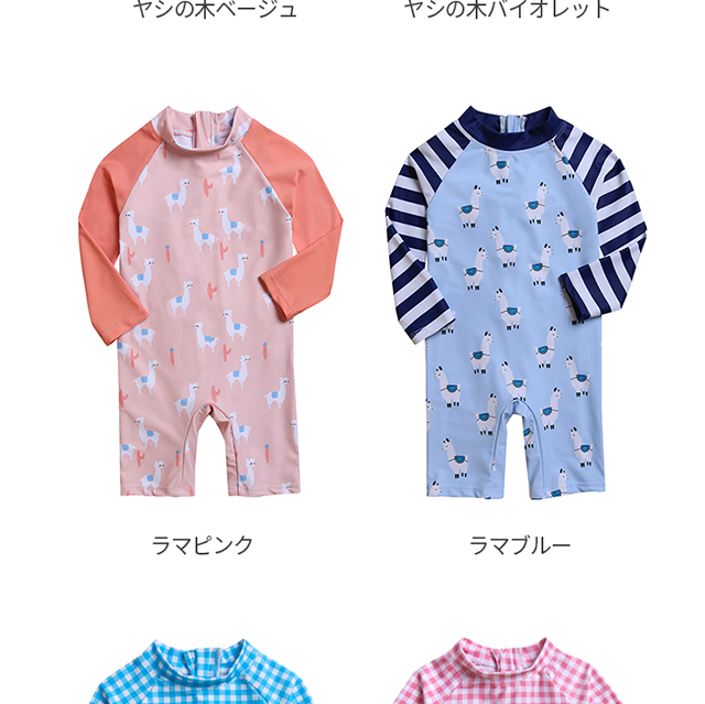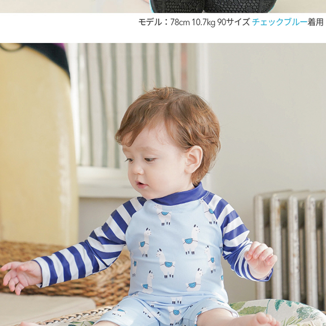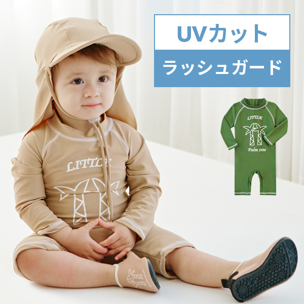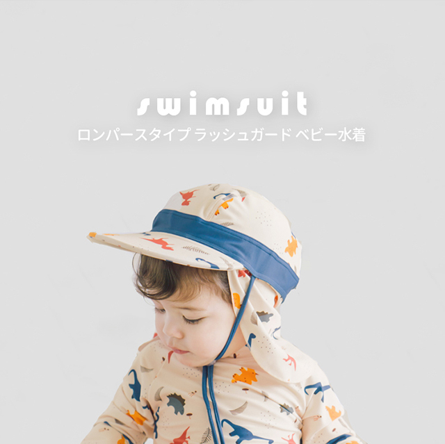 初めての水遊びに…ロンパースタイプのラッシュガード水着。