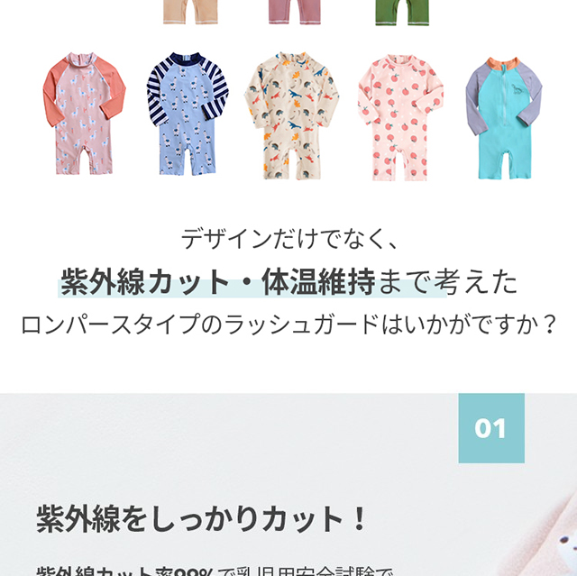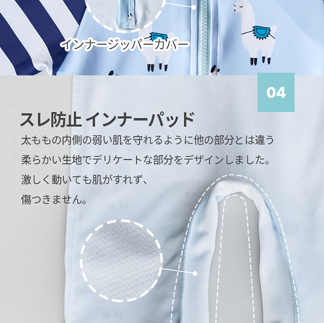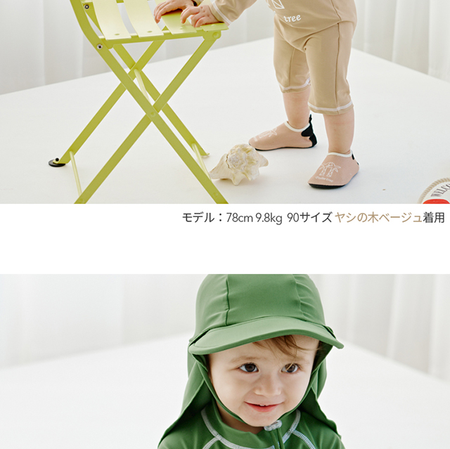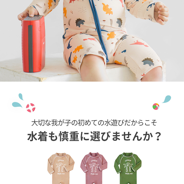 デザインだけでなく、赤ちゃんのことを考えた機能も兼ね備えたベビー水着に仕上がっています。