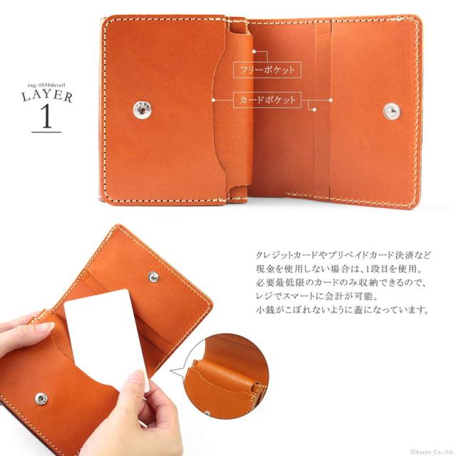 一段目はカードケースとして、二段目はお財布として使い分けられます。