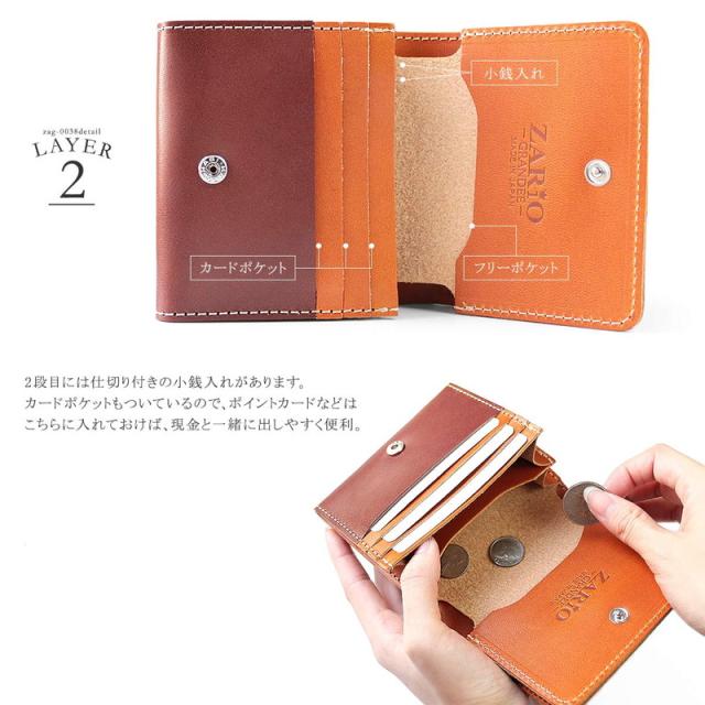 折り財布 メンズ レディース 二つ折り財布 短財布 栃木レザー 本革 日本製 ZARIO GRANDEE ザリオグランデ【ZAG-0038】 ブランド 人気