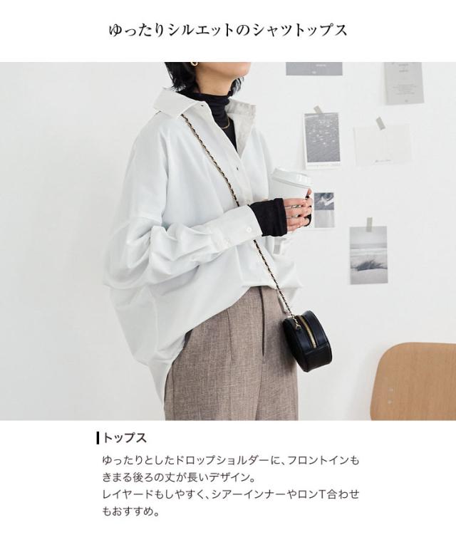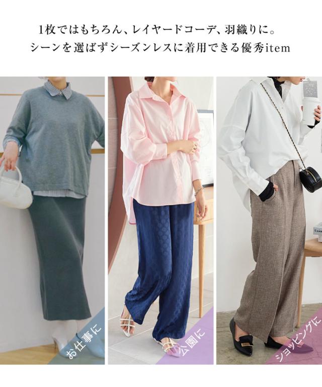 リラックス感のあるルーズシルエットがさっと着るだけでこなれ感たっぷり。肌ざわりの良い、さらりとしたコットン混素材で、シワになりにくくお手入れも簡単。デイリーからオフィス、肌寒い日や紫外線防止の羽織りに、幅広いシーンでお使いいただけます。【素材・サイズ感】身頃はゆったりとし、気になるヒップもふんわりカバーしてくれるチュニック丈。薄手素材なのでレイヤードにも使いやすく、トップスとしても羽織りとしてもOK。お袖は少したくしあげて、抜け感をだすのもおすすめです。※キャンセル/変更不可※※お届けまでの日程について