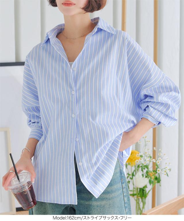 コットン混ルーズビッグシャツトップス C3815 入荷済 レディース 20代 30代 40代 トップス アウター シャツ 長袖 コットン 無地 ストライプ ビッグ 羽織り ライトアウター ゆったり リラックス ホワイト 白 チュニック レイヤー