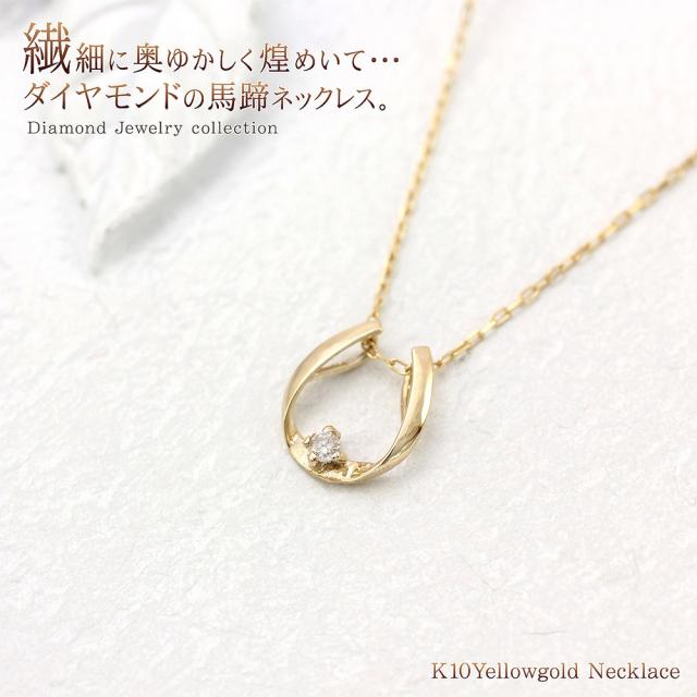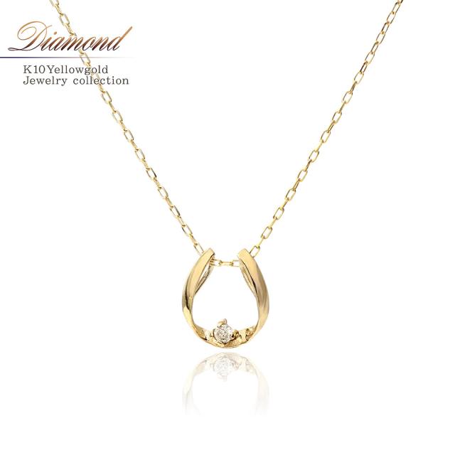 ダイヤモンド ネックレス 馬蹄 ゴールド ジュエリー レディース アクセサリー ホースシュー プレゼント 誕生日 小ぶり 小さめ かわいい 10金 K10 10K ダイヤ 記念日 誕生日 ギフト 贈り物 女性 彼女 妻 嫁 おしゃれ 4月 誕生石 本物 ホワイトデー お返し
