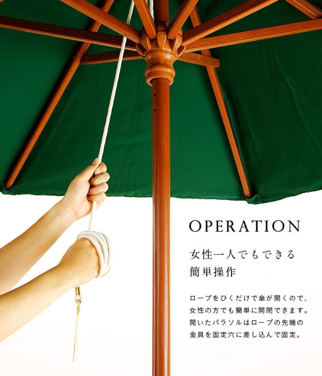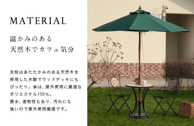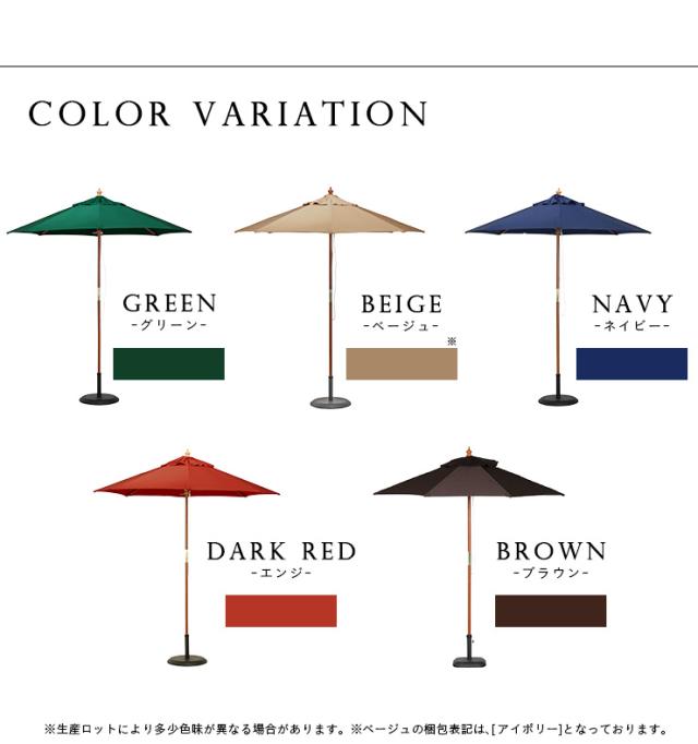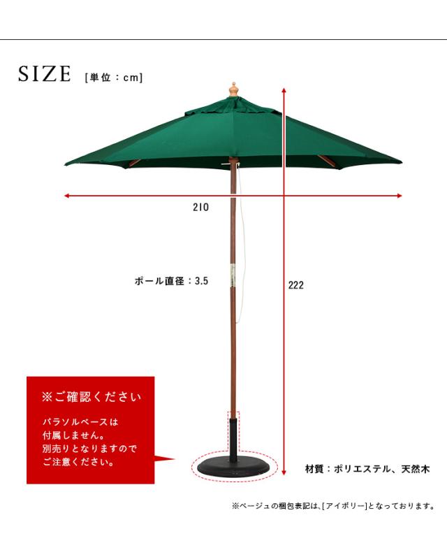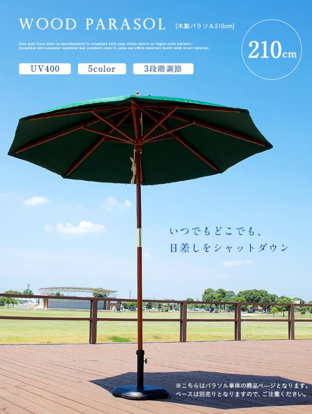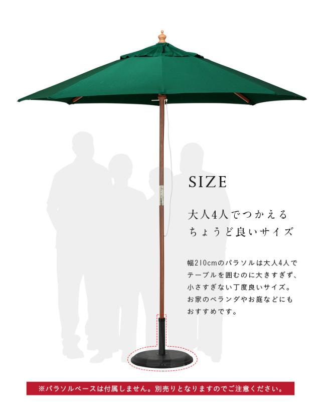 ガーデンパラソル WOOD PARASOL(ウッドパラソル) 210cm ベース無 5色対応 木製パラソル ガーデン パラソル ガーデンファニチャー カフェ 庭 テラス 屋外 アウトドア 木製 おしゃれ グリーン アイボリー ネイビー エンジ ブラウン