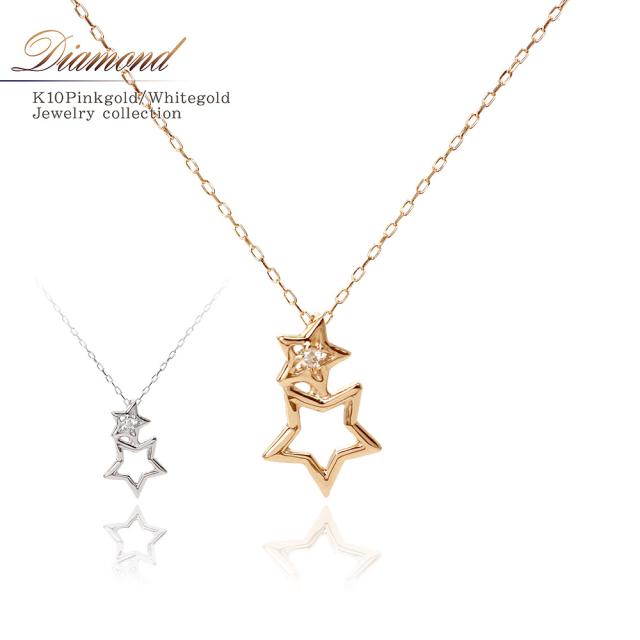 星のネックレス ダイヤモンド 宝石 かわいい ネックレス 星 スター ピンクゴールド ホワイトゴールド ジュエリー アクセサリー 可愛い プレゼント 10金 10K 本物 ホワイトデー お返し 記念日 誕生日 ギフト 贈り物 女性 彼女 妻 嫁 4月 誕生石