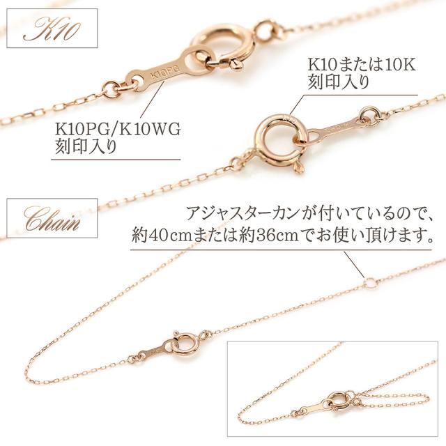 | 地金・素材 | ・天然ダイヤモンド 0.01ct (品質保証書付き) ・地金:K10PG(10金ピンクゴールド)、K10WG(10金ホワイトゴールド) |