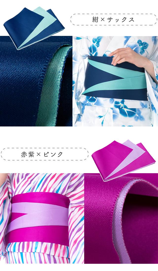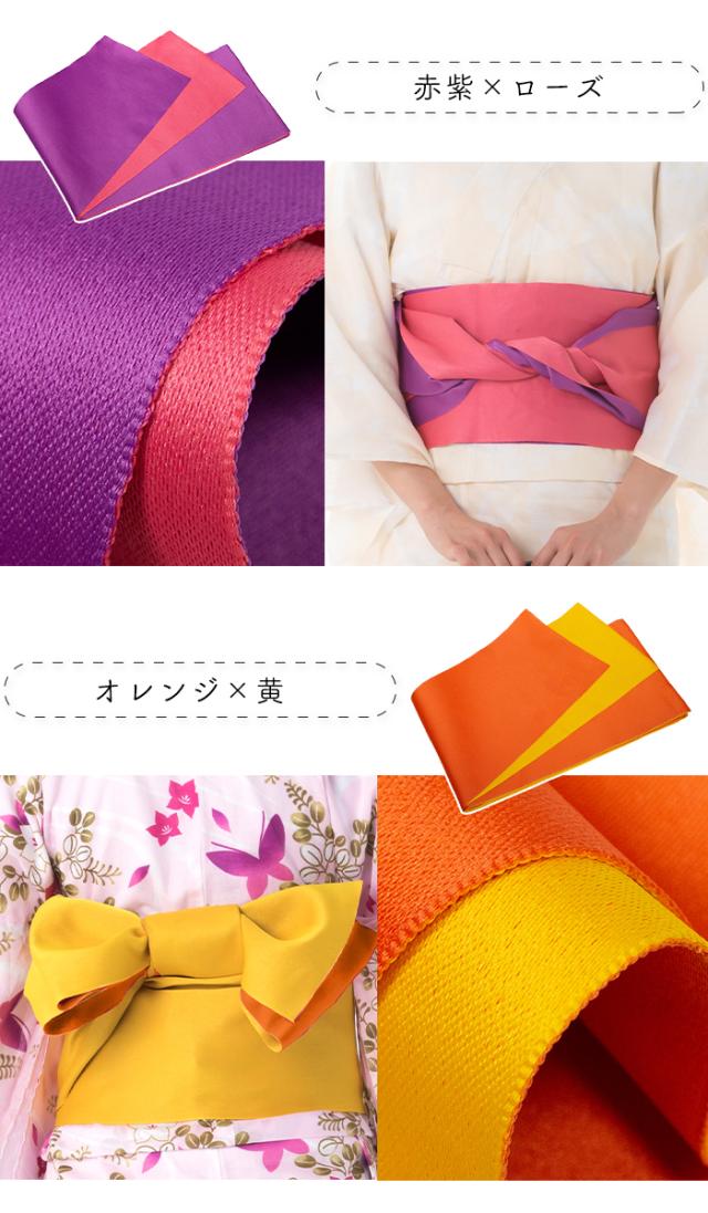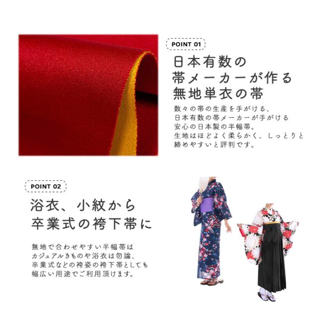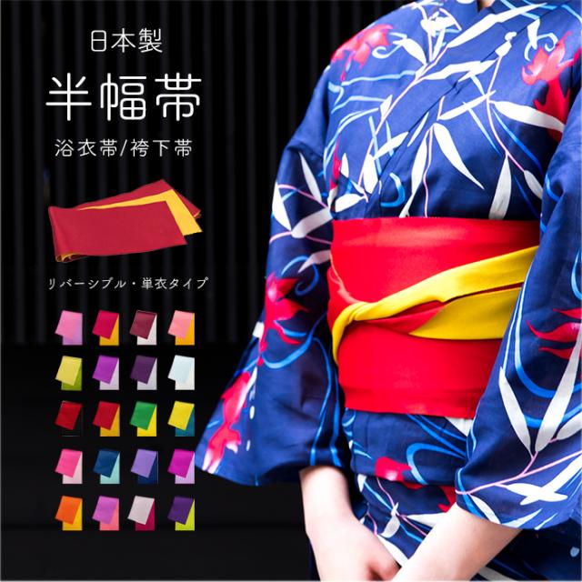 (浴衣帯 無地) 浴衣 袴 帯 袴下帯 日本製 20colors ゆかた帯 半幅帯 リバーシブル 浴衣帯 レディース 女性 卒業式