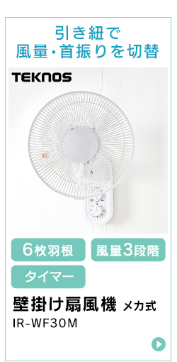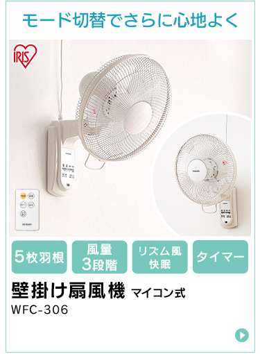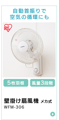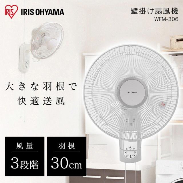 扇風機 壁掛け 壁掛け扇風機 上下 左右 首振り 風量3段階 5枚羽根 30cm 壁掛金具 引き紐 省スペース リビング扇風機 リビングファン 簡単操作 シンプル操作 キッチン 寝室 子供部屋 脱衣所 アイリスオーヤマ WFM-306 *