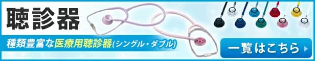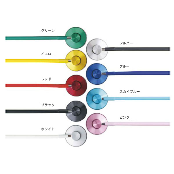 | 素材 | チェストピース:アルミニウム(アルマイトメッキ)、 振動板:ガラスエポキシ、 耳管:真鍮(クロームメッキ)外バネ式、 イヤーピース:PP(ポリプロピレン) |