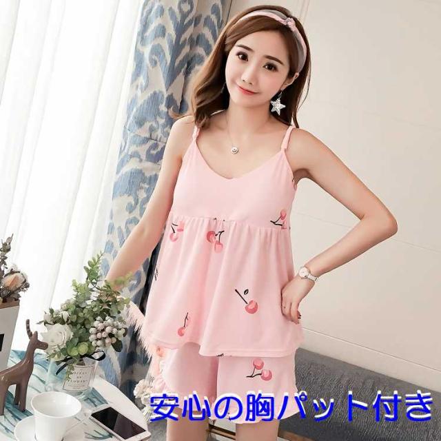最終処分価格で超お買い得!!キャミソールタイプ ルームウェア 2点 セット ペールカラー ホームウェア 胸パット パジャマ 短パン タンクトップ 女子会 夏 春 890402
