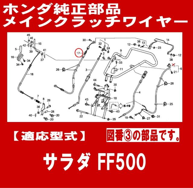 ホンダ 耕うん機 FF500用 メインクラッチワイヤー[54510-V24-003]