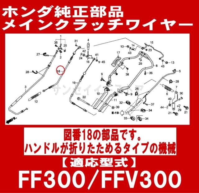 ホンダ純正 耕うん機 FF300K1,FFV300用のメインクラッチワイヤーです。