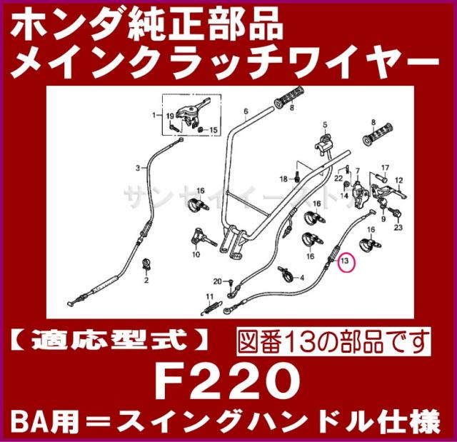 ホンダ純正 耕うん機 F220BA用のメインクラッチワイヤーです。