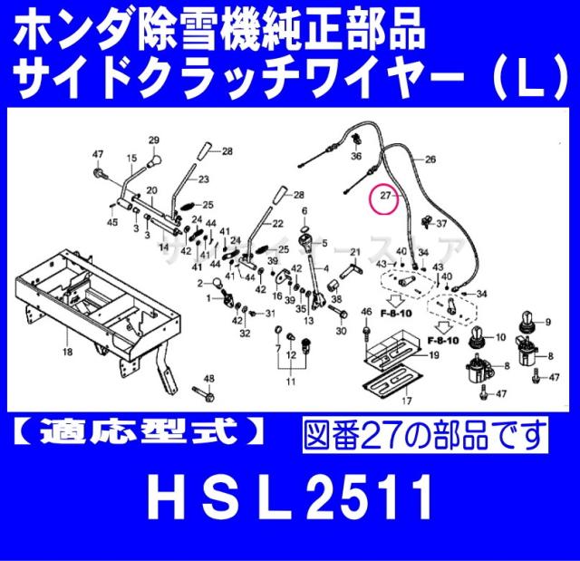 ホンダ 除雪機 HSL2511用 サイドクラッチワイヤー(L)※残りわずか[54730-V12-A00]