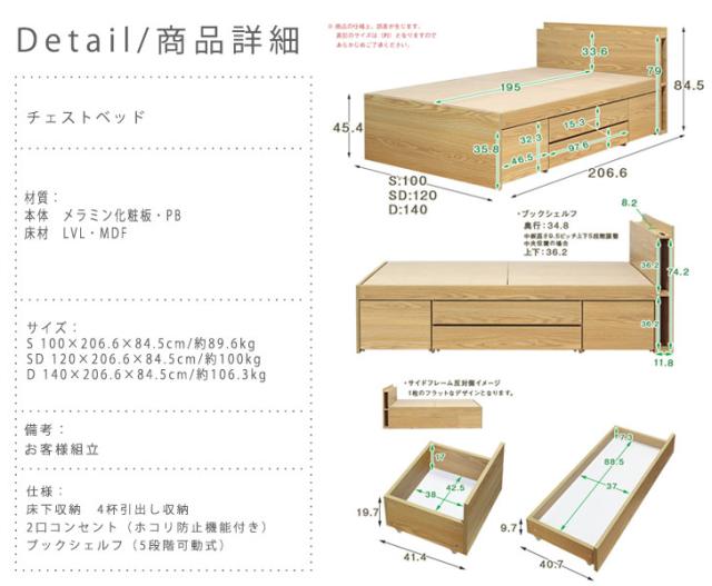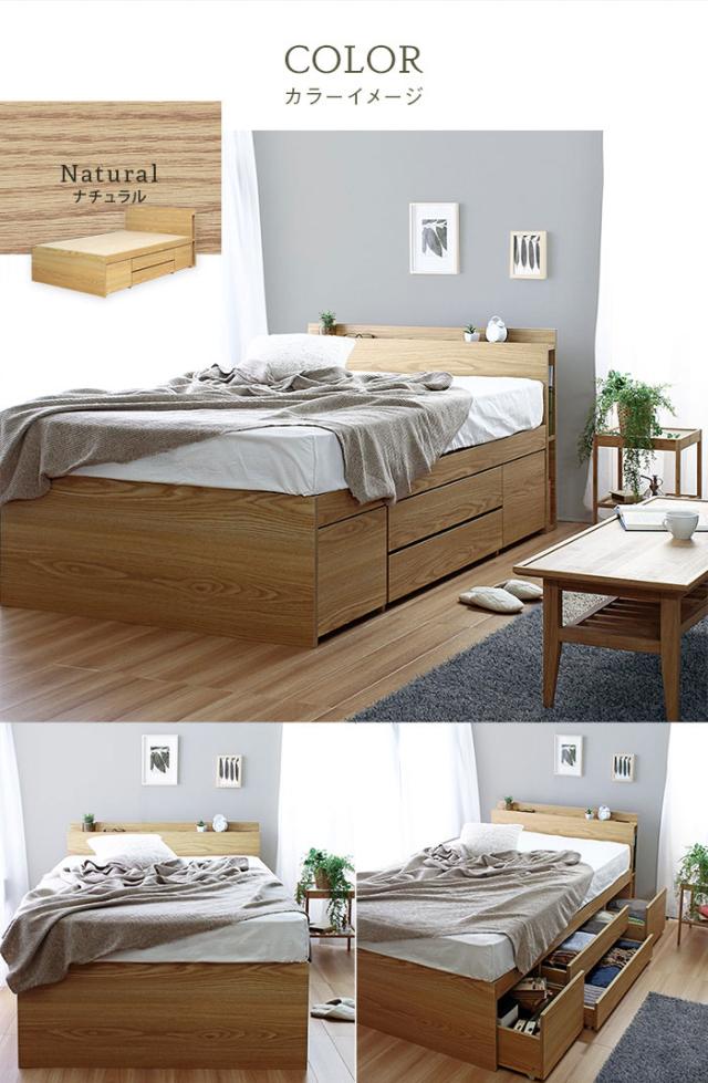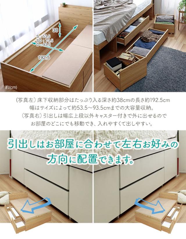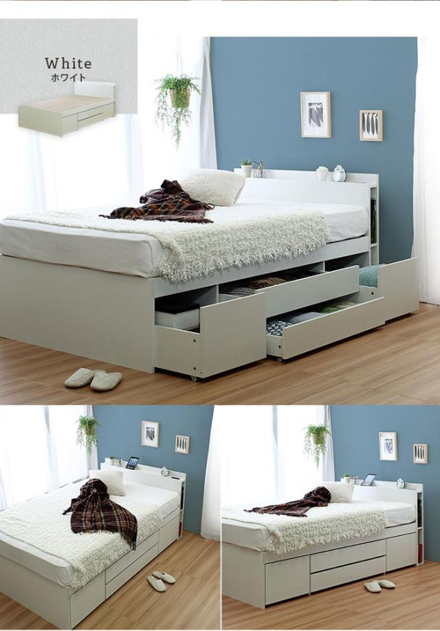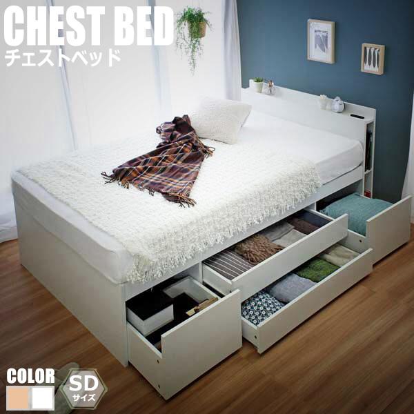 Cattleya カトレヤ チェストベッドフレーム SDサイズ (シンプル ベッドフレーム ホワイト 白 ナチュラル 多収納 モダン)