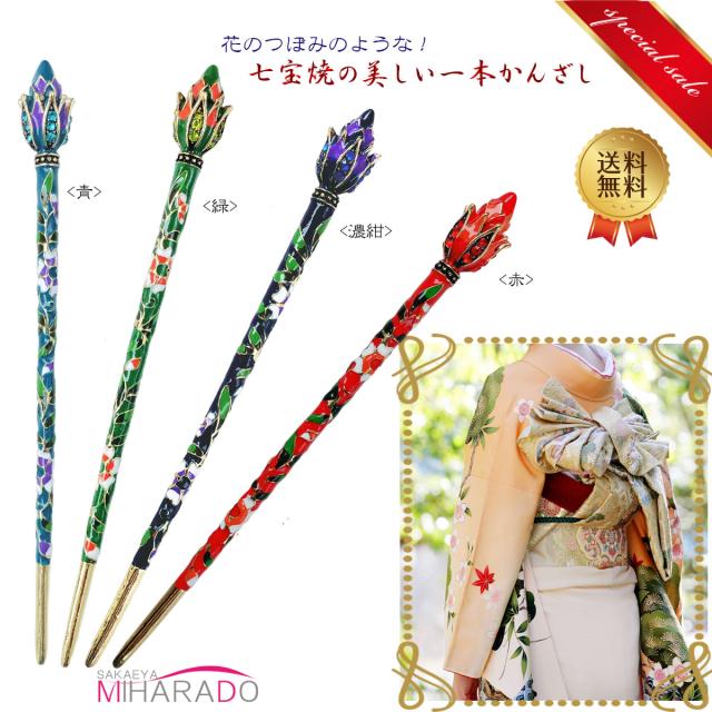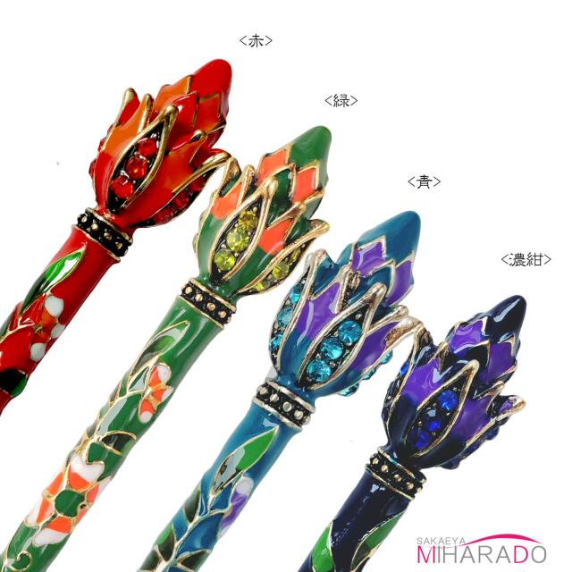 送料無料 一本かんざし 簪 アンティーク風 七宝焼 花の蕾 和洋装 髪飾り 留袖 即納