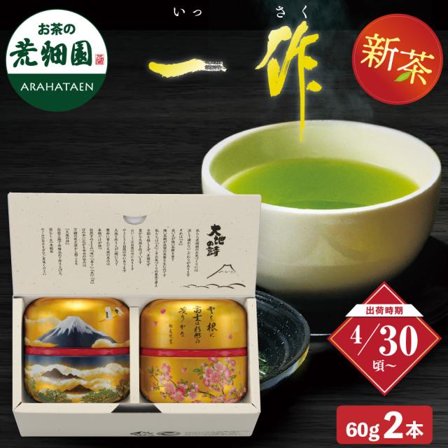 【新茶予約】 荒畑園の最高峰 一作(いっさく)60g缶 2缶箱入 静岡茶 お茶の葉 茶葉 お茶 深蒸し茶 緑茶 高級茶 上級茶 日本茶 ギフト お土産 贈答 一番茶