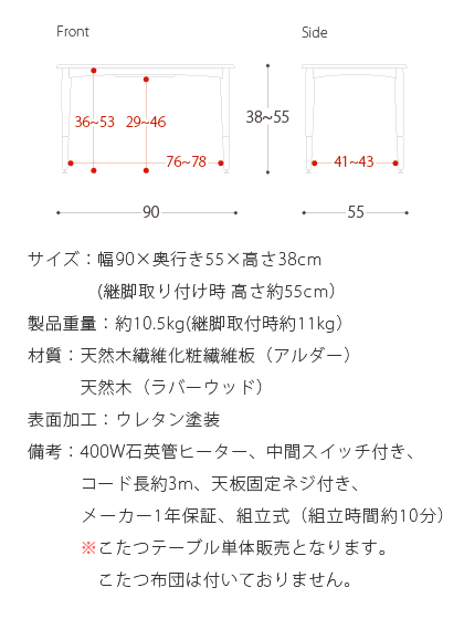 こたつ テーブル 長方形 こたつテーブル おしゃれ 北欧 高さ変更 コタツ ローテーブル ソファテーブル 木製 アルダー リビングテーブル 炬燵 天然木 薄型ヒーター ナチュラル モダン レトロ 2WAYこたつテーブル Olto〔オルト〕 90cm幅