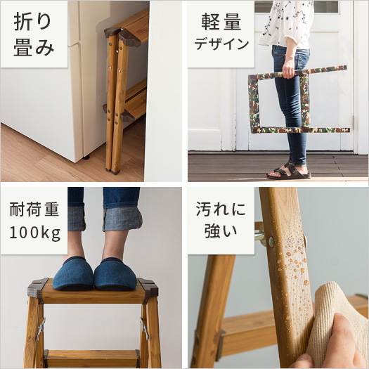 踏み台 脚立 折りたたみ 2段 おしゃれ かわいい コンパクト 木目調 折り畳み スツール ステップスツール ステップ踏み台 ステップ台 アルミ ウッド調 木目模様 昇降台 西海岸 ナチュラル ステップスツール 2段タイプ