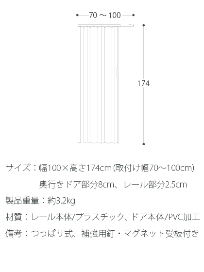 アコーディオンドア アコーディオンカーテン つっぱり おしゃれ パネルドア 簡単リフォーム 間仕切り パーテーション 幅70〜100cm 高さ174cm以上 エコ 省エネ おしゃれ つっぱり式 アコーディオンドア JOY FIT〔ジョイフィット〕