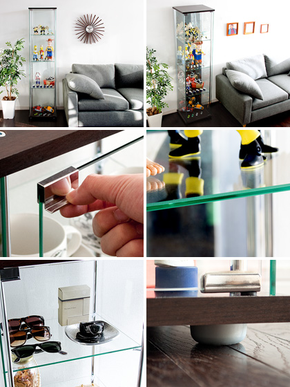 コレクションケース コレクションボックス コレクションボード ガラス コレクションラック フィギュア ディスプレイ ラック ケース 収納棚 棚 コレクションケース Alexis〔アレクシス〕4段 背面ガラスタイプ ブラウン