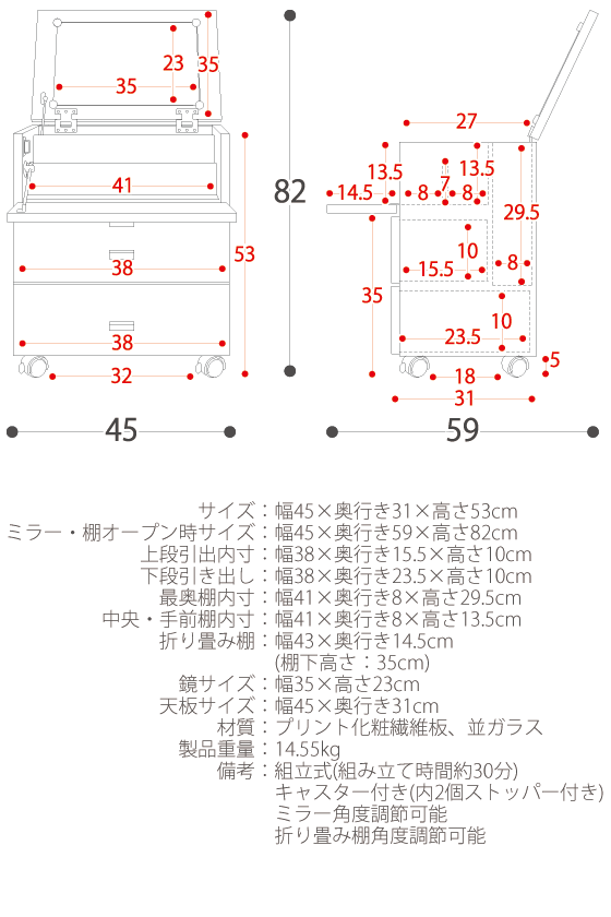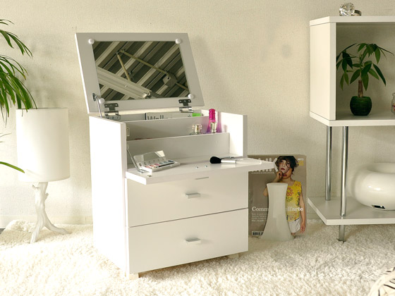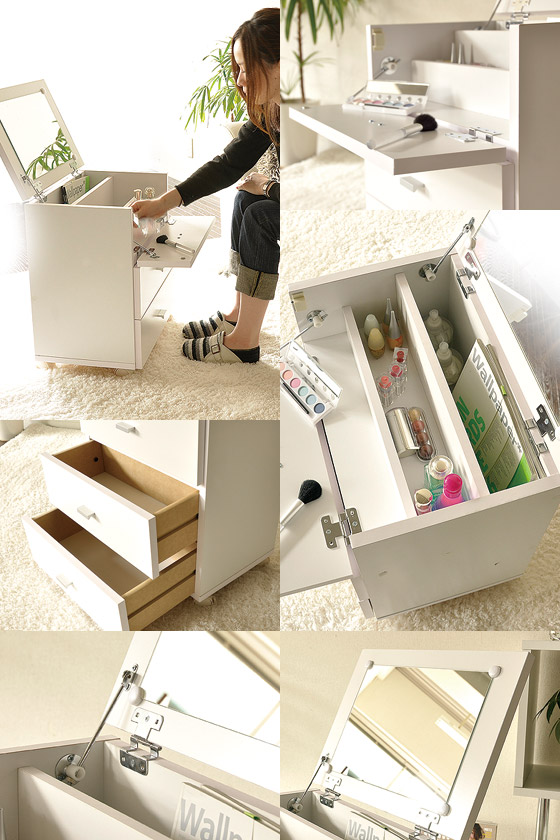 ドレッサー コンパクト おしゃれ 白 ホワイト 鏡台 ドレッサーワゴン ミラー 鏡 一面ドレッサ コスメ ミラー 鏡 メイクボックス メイク 木製 コンパクトドレッサー PAPHIO〔パフィオ〕