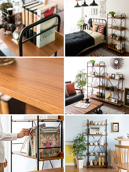 シェルフ 木製 アイアン 収納棚 おしゃれ ラック 棚 オープンラック 本棚 収納 ブックシェルフ 木目 北欧 rack アイアン 整理 本収納 ラック おしゃれ シンプル 西海岸 ヴィンテージ SMART〔スマート〕マルチシェルフ 4段タイプ 単体販売 ブラウン