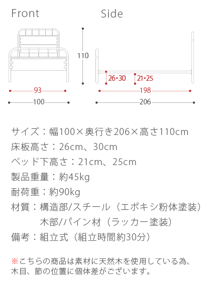 ベッド シングル ベッドフレーム スチール パイプベッド アイアン ヴィンテージ ビンテージ 西海岸 モダン ブルックリン 大人 男前 高さ調整可能 天然木 ウッド パイン材 ベッド下収納 スペース スチールベッド Cruise〔クルーズ〕 シングルサイズ