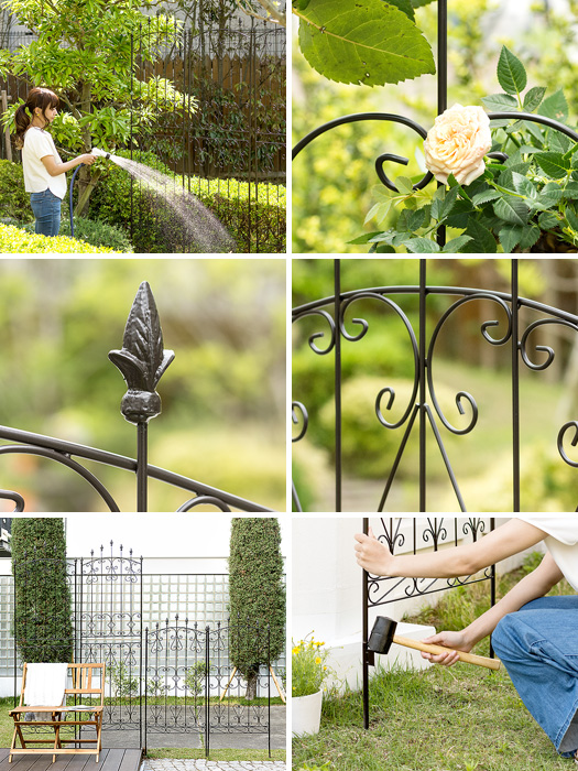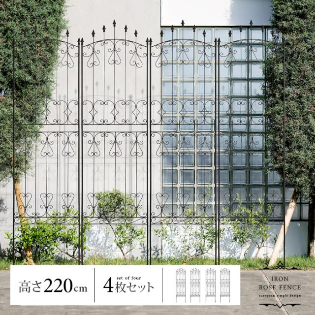 アイアン フェンス ガーデニング 目隠し 庭 シンプル スチール アンティーク 高さ220cm 4枚組み ラティス おしゃれ 屋外 ガーデン 植物 つる 薔薇 バラ つた アイアンローズフェンス 220cm ロータイプ 4枚セット