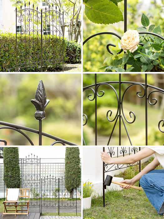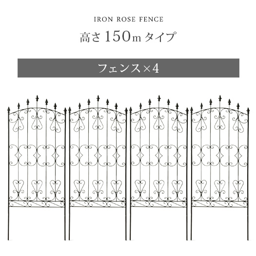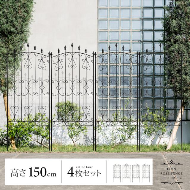 アイアン フェンス ガーデニング 目隠し 庭 シンプル スチール アンティーク 高さ150cm 4枚組み ラティス 屋外 ガーデン 植物 つる 薔薇 バラ つた アイアンローズフェンス 150cm ロータイプ 4枚セット