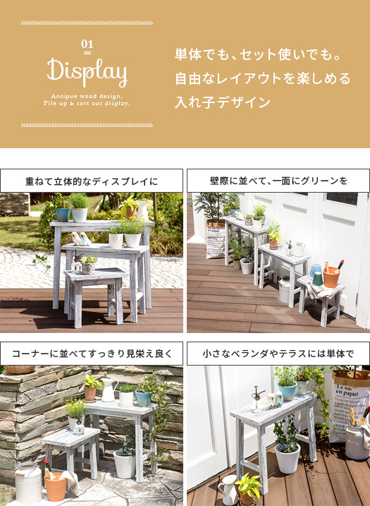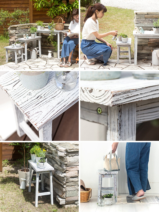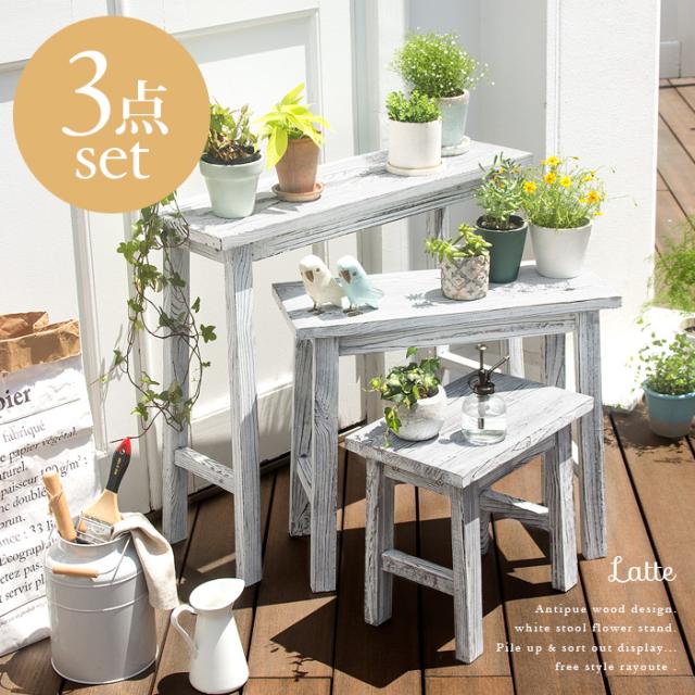 フラワースタンド 花台 ガーデン ガーデニング スタンド スツール 天然木 アンティーク かわいい フレンチ シンプル 北欧 カントリー 庭 バルコニー 屋外 白 スツール型フラワースタンド Latte(ラッテ)3サイズセット