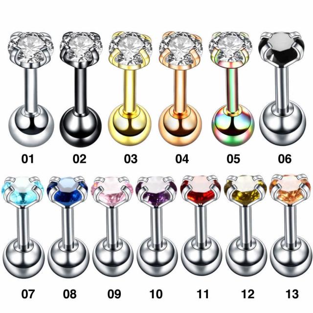 [丸型 ボディピアス 16G] 立て爪ジルコニア ストレートバーベル 軟骨ピアス 16ゲージ ステンレス メンズ レディース ボディーピアス ヘリックス トラガス アンテナ プレゼント 母の日 父の日 クリスマス ブラック ゴールド ピンクゴールド 黒色 金色 ギフト 人気 コンク 爪
