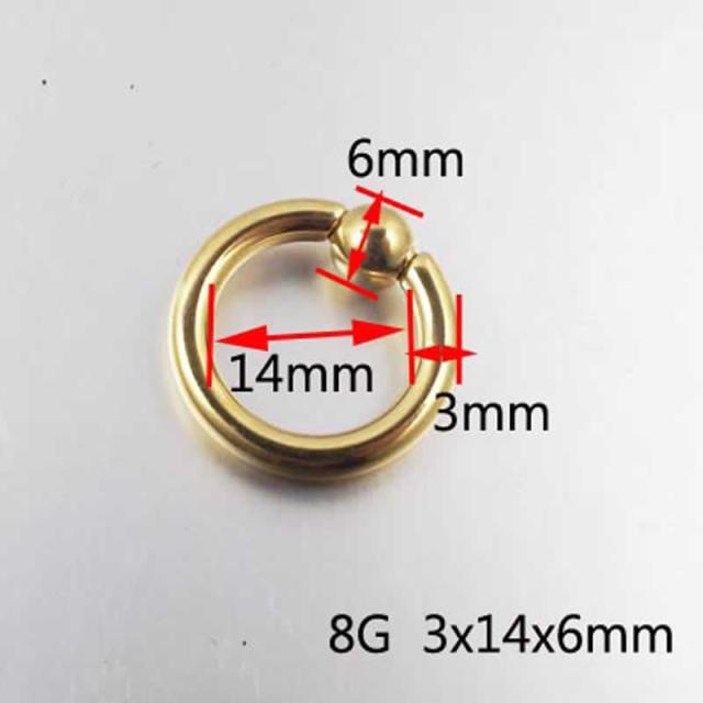 キャプティブリングを着けいけど大きいゲージだとキャッチが固くて外せないと諦めていた人にもオススメです。スプリング式ボールで装着簡単ですが、普通の構造のキャプティブビーズよりもボールが外れやすく紛失しやすいのと、見た目が通常のビーズリングよりすこし野暮ったく見えてしまう。それでも装着しやすいのいい!って人にはオススメです。