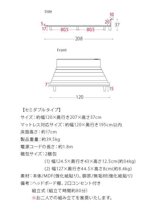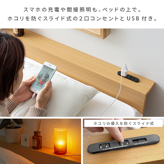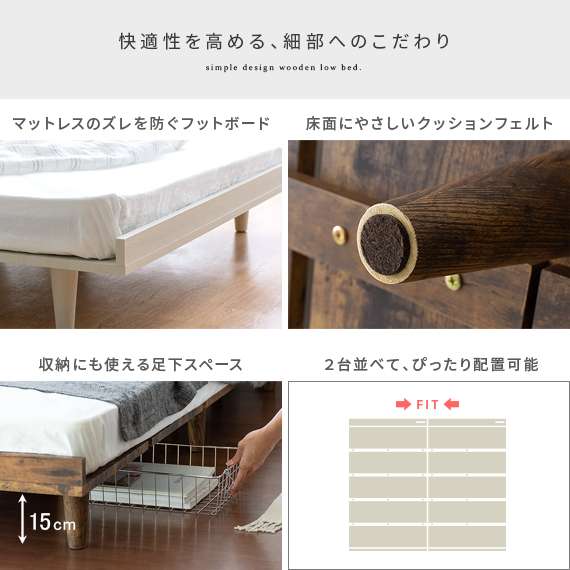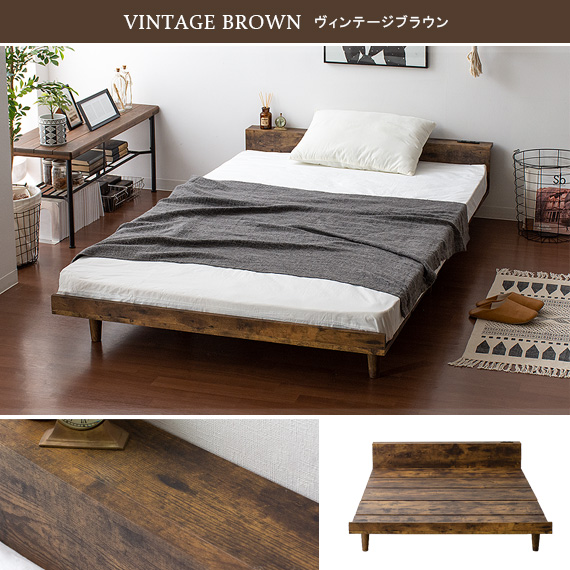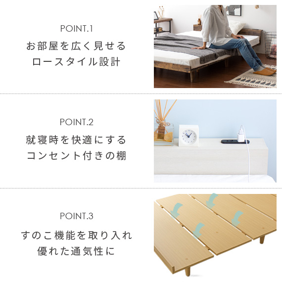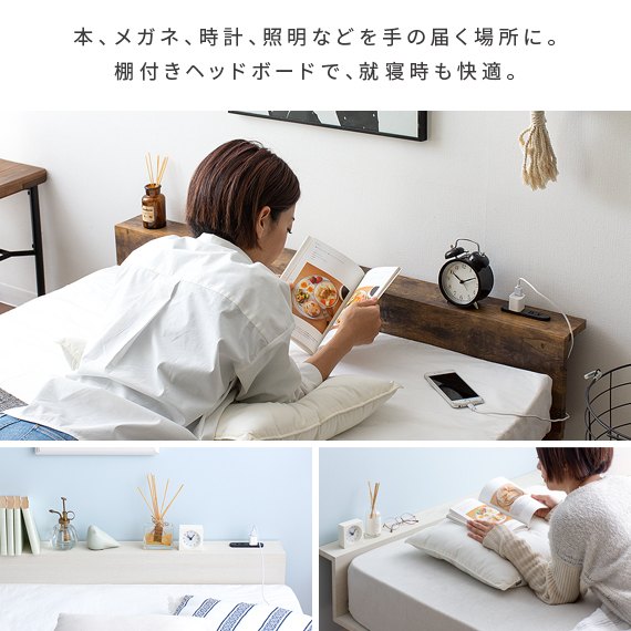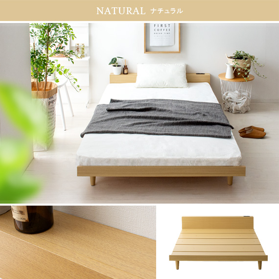 ベッド セミダブル セミダブルベッド 棚付き ローベッド ロータイプ おしゃれ 北欧 モダン コンセント 木製 ベット 宮付き ベッド 木目調ローベッド Miley〔マイリー〕セミダブル ベッドフレーム単体販売