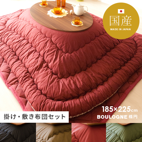 こたつ布団 こたつ敷布団 楕円形 こたつ布団セット こたつ掛け布団 こたつ コタツ 炬燵 国産 北欧 おしゃれ シンプル 厚掛け 厚手 無地 和モダン こたつ布団セット BOULOGNE〔ブローニュ〕 185×225cm 楕円形タイプ