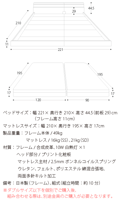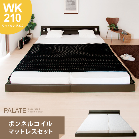 ベッド ローベッド フロアベッド ワイド キング 宮付 照明付 マットレス付き キングサイズ 日本製 すのこ 北欧 シンプル モダン ブラウン ホワイト フロアベッド PALATE(パレート) ワイドキング210 ボンネルコイルマットレスセット