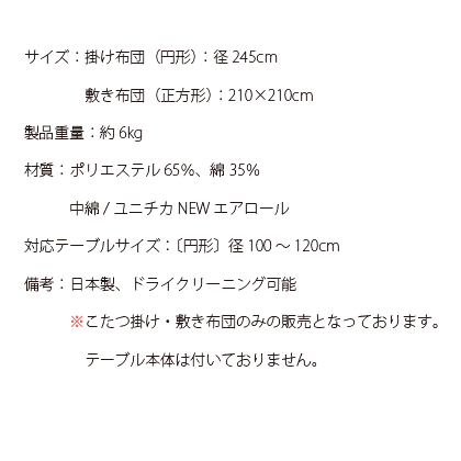 こたつ布団 こたつ敷布団 円形 245 こたつ布団セット こたつ掛け布団 こたつ コタツ布団 炬燵 国産 北欧 おしゃれ シンプル モダン 無地 厚手 厚掛け こたつ布団セット BOULOGNE〔ブローニュ〕 径245cm 円形タイプ