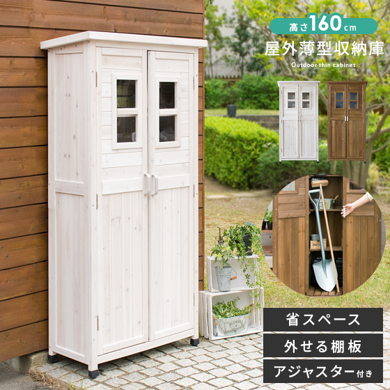 収納庫 屋外 収納棚 物置 木製 薄型 大容量 スリム ベランダ 収納 ストッカー 棚 物置き 収納 玄関 庭 屋外収納 屋外物置 倉庫 ガレージ 雨よけ ベランダ収納庫 ラック ガーデニング 扉付 屋外薄型収納庫 高さ160cmタイプ